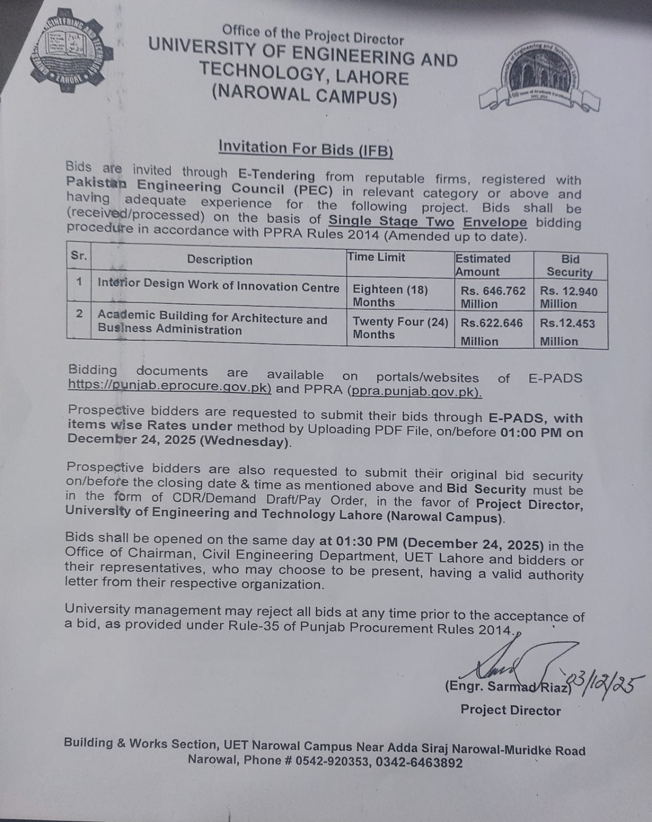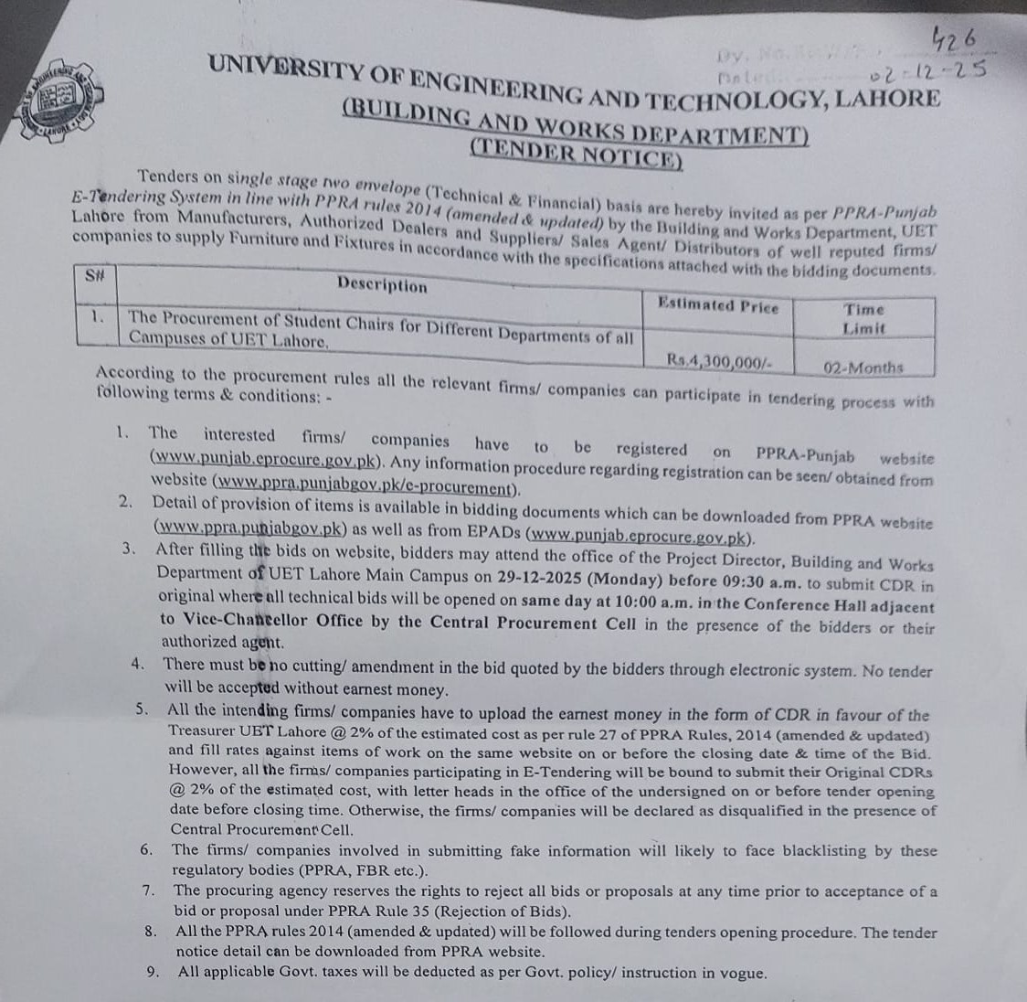 Latest Admissions in UET can be seen here, News related to Admissions are archived here date wise, by clicking you can explore Admissions details.